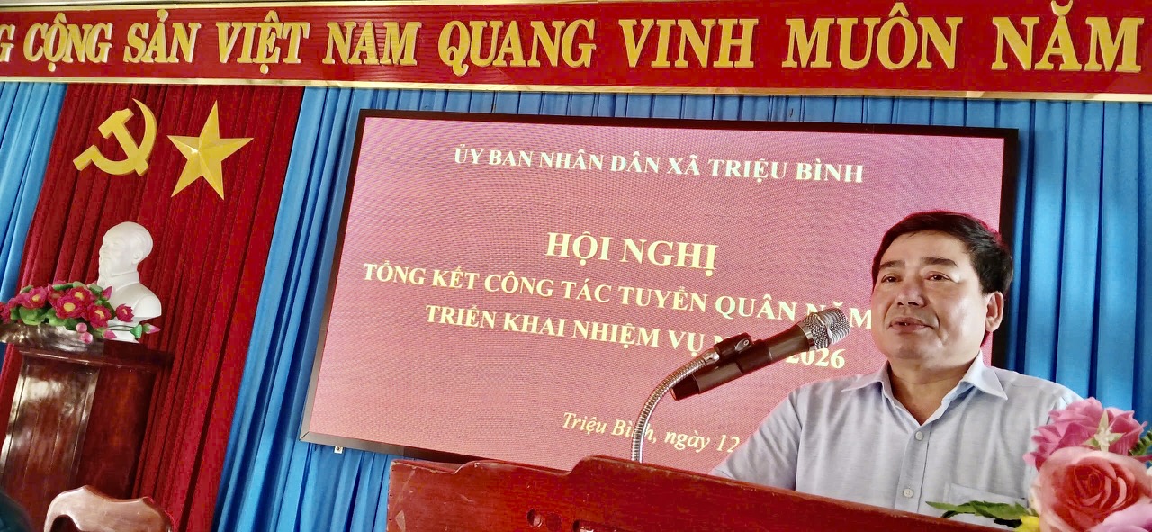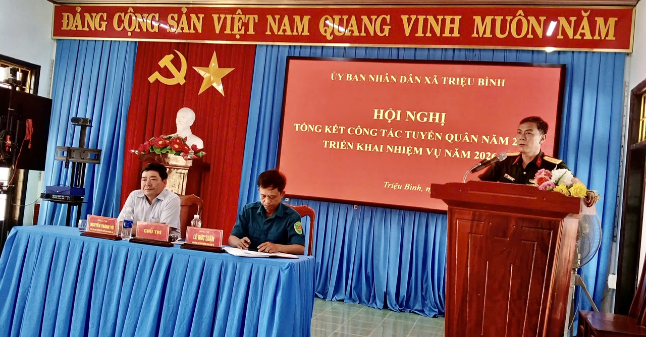 Phát biểu chỉ đạo Hội nghị Đ/c Phó Chỉ huy trưởng Ban Chỉ huy PTKV4-Triệu Phong đã ghi nhận, biểu dương những kết quả đã đạt được trong năm 2025 của xã nhà, tiếp thu những kiến nghị đã nêu trong báo cáo và kiến nghị của đại biểu đồng thời nêu lên một số tồn tại hạn chế trong năm, những khó khăn trong thời gian tới và định hướng một số nhiệm vụ cần tập trung lãnh đạo, chỉ đạo công tác tuyển quân năm 2026.