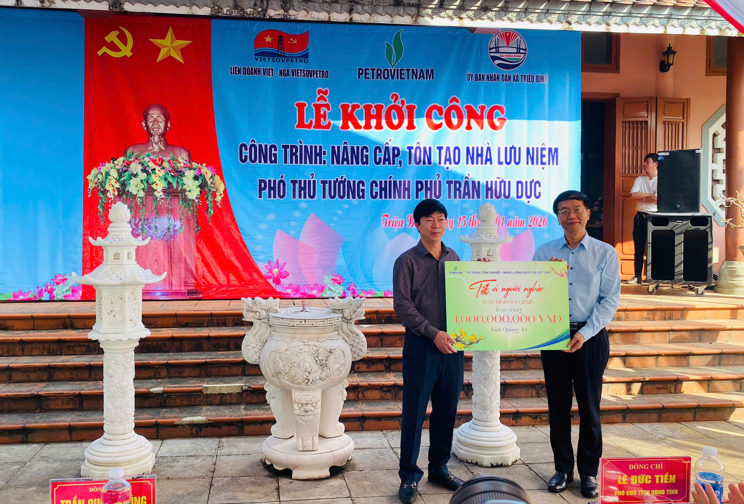 Nhân dịp này, Tập đoàn Công nghiệp – Năng lượng Quốc gia Việt Nam đã trao tặng tỉnh Quảng Trị số tiền 1 tỉ đồng nhằm hỗ trợ chương trình “Tết vì người nghèo” xuân Bính Ngọ năm 2026, góp phần giúp các hộ nghèo, hộ cận nghèo, đối tượng yếu thế trên địa bàn tỉnh có thêm điều kiện vui Xuân, đón Tết đầm ấm, nghĩa tình.