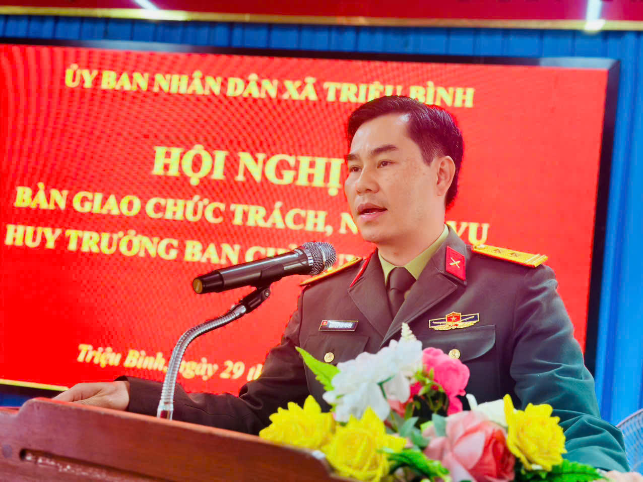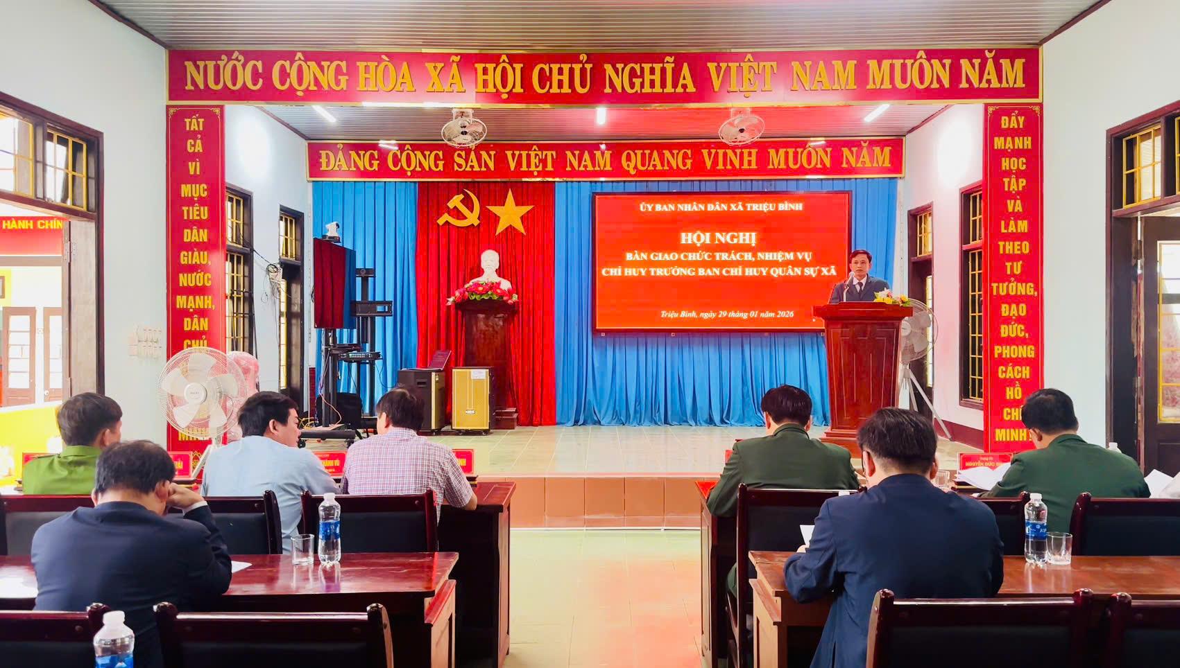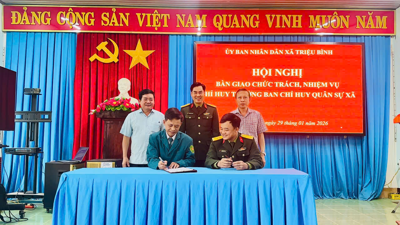 Sáng 29/1, UBND xã Triệu Bình tổ chức Hội nghị bàn giao chức trách, nhiệm vụ Chỉ huy trưởng Ban Chỉ huy Quân sự xã.