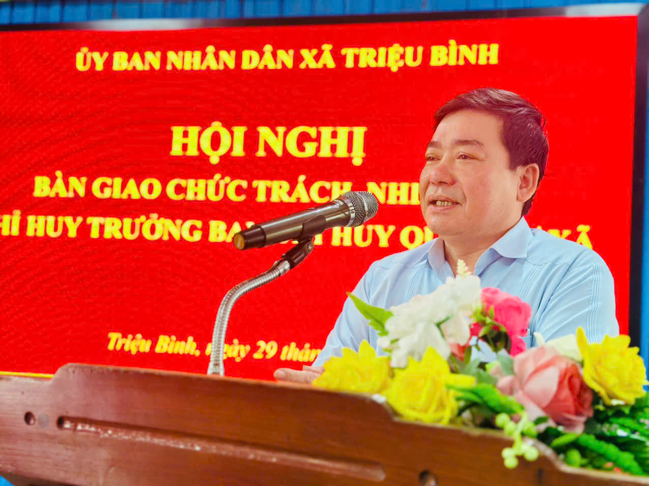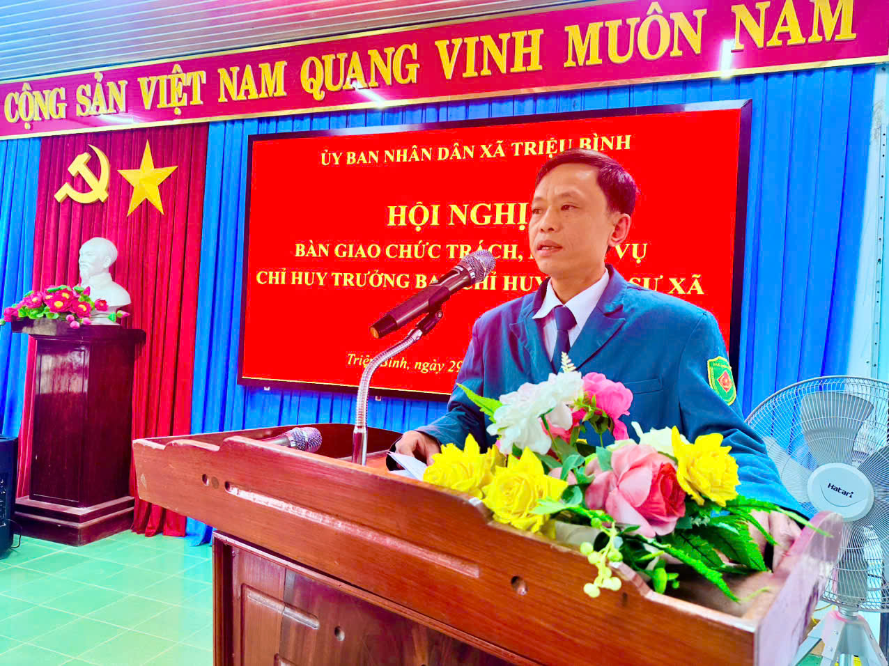 Phát biểu chỉ đạo tại hội nghị, đồng chí Trung tá Nguyễn Tài Tuyến – Phó Chính ủy Ban Chỉ huy khu vực phòng thủ 4 - Triệu Phong ghi nhận, đánh giá cao những đóng góp của Ban Chỉ huy Quân sự xã Triệu Bình trong thời gian qua; đồng thời đề nghị trên cương vị công tác mới, đồng chí Chỉ huy trưởng tiếp tục phát huy phẩm chất Bộ đội Cụ Hồ, đoàn kết nội bộ, chủ động tham mưu, phối hợp chặt chẽ với các lực lượng, hoàn thành tốt nhiệm vụ quốc phòng – quân sự địa phương trong tình hình mới.