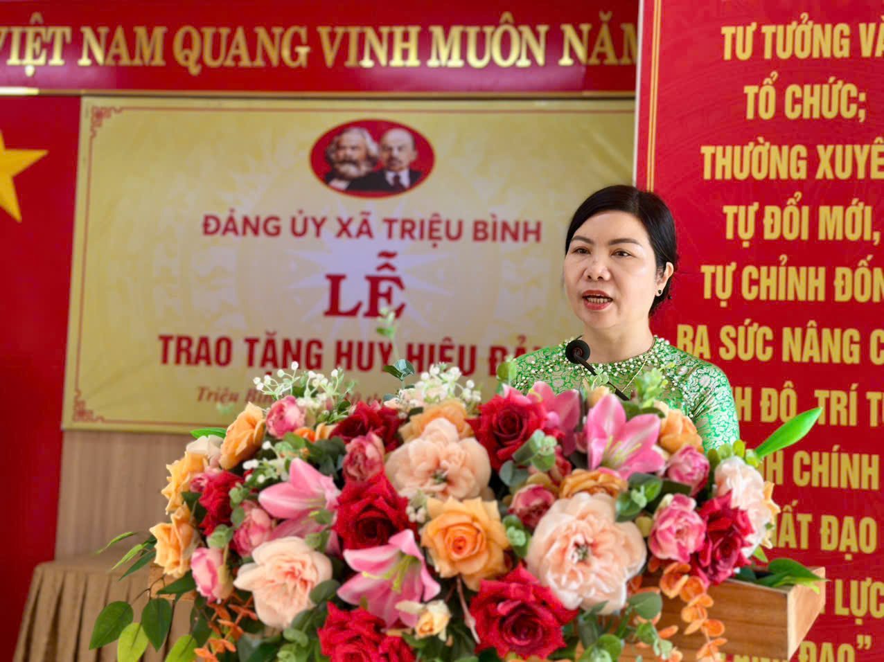 Phát biểu tại buổi lễ, đồng chí Đỗ Thị Ái Nguyệt – Bí thư Đảng ủy, Chủ tịch HĐND xã đã biểu dương, trân trọng những đóng góp của các đảng viên được trao Huy hiệu Đảng; đồng thời mong muốn các đồng chí tiếp tục phát huy truyền thống cách mạng, nêu gương sáng, tích cực tham gia xây dựng Đảng, chính quyền và hệ thống chính trị ở cơ sở ngày càng trong sạch, vững mạnh.