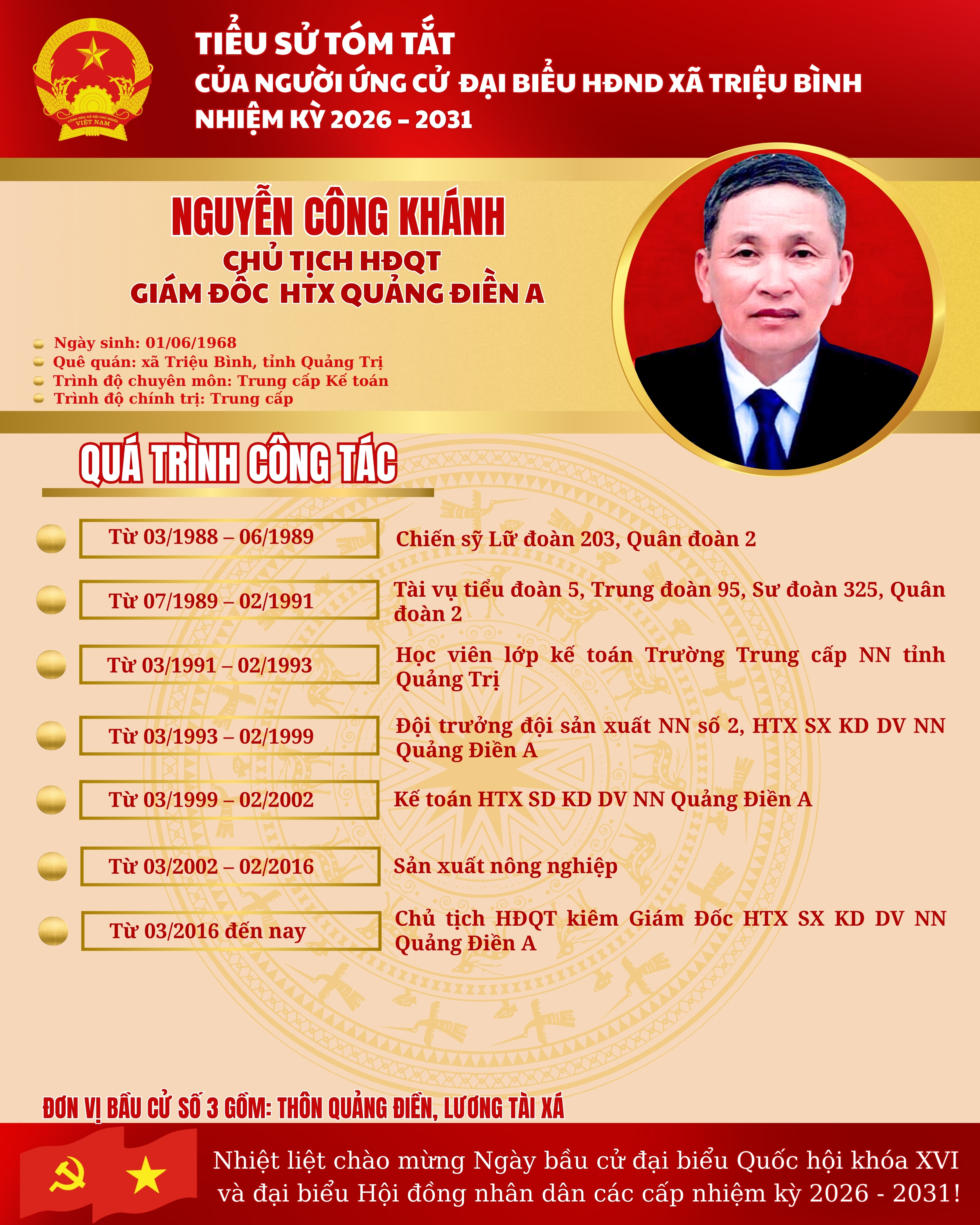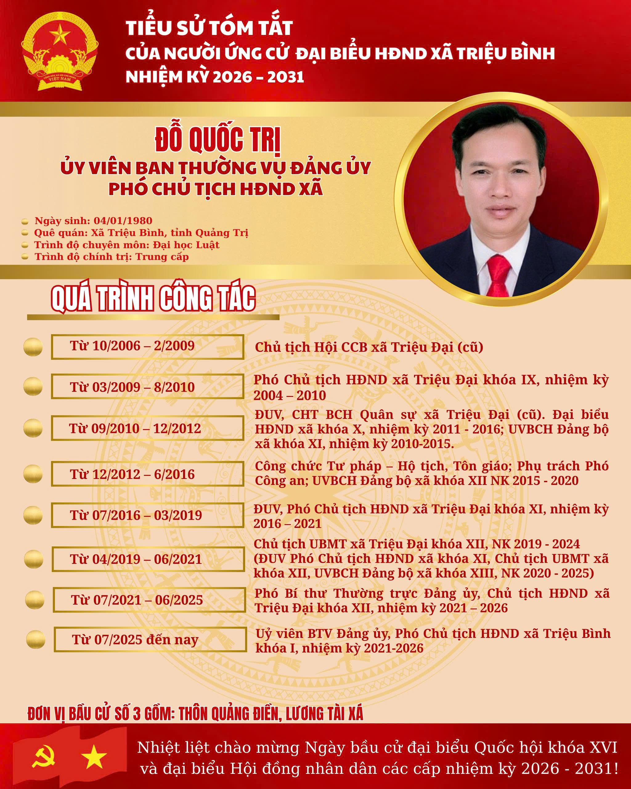 ĐƠN VỊ BẦU CỬ SỐ 3 - DANH SÁCH NGƯỜI ỨNG CỬ ĐẠI BIỂU HĐND XÃ TRIỆU BÌNH NHIỆM KỲ 2026 - 2031