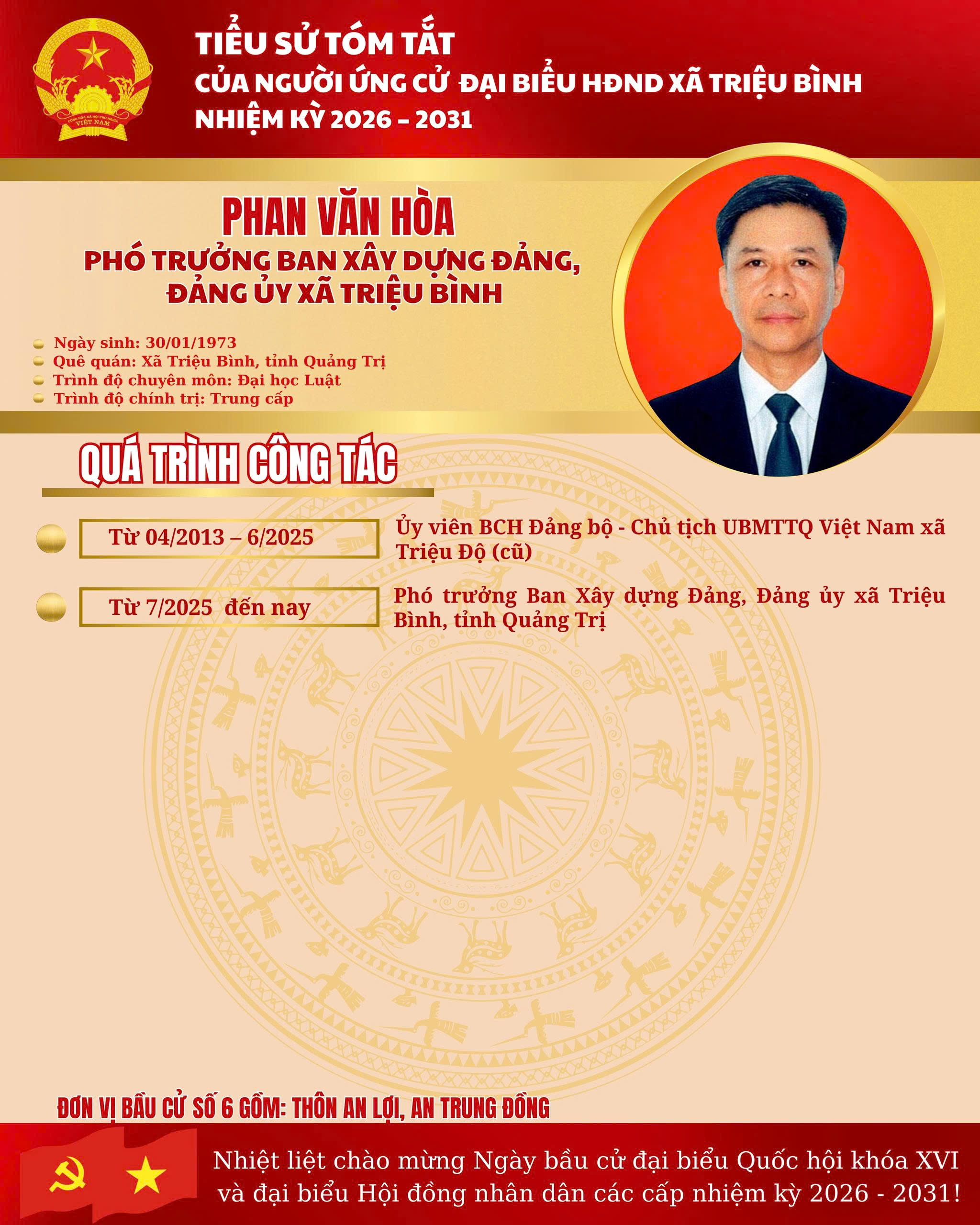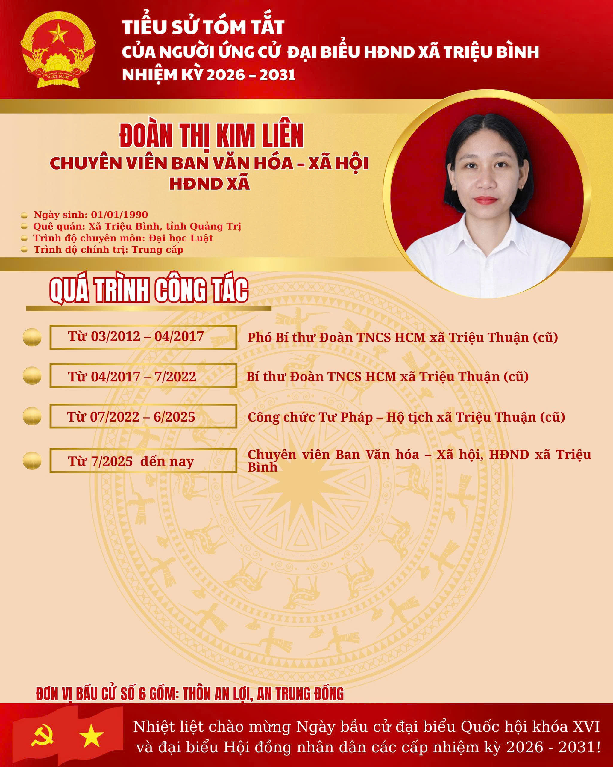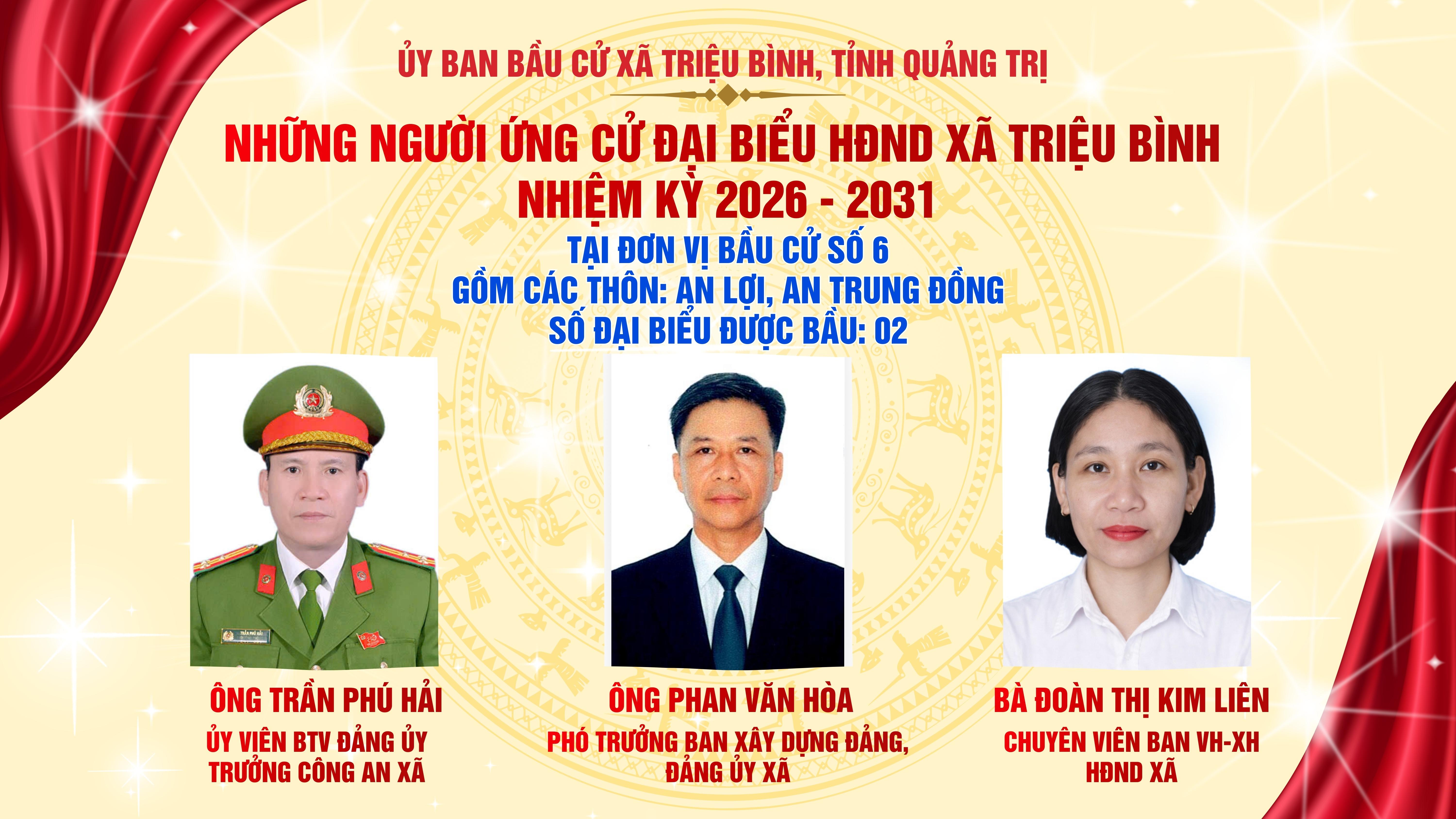 ĐƠN VỊ BẦU CỬ SỐ 6 - DANH SÁCH NGƯỜI ỨNG CỬ ĐẠI BIỂU HĐND XÃ TRIỆU BÌNH NHIỆM KỲ 2026 - 2031