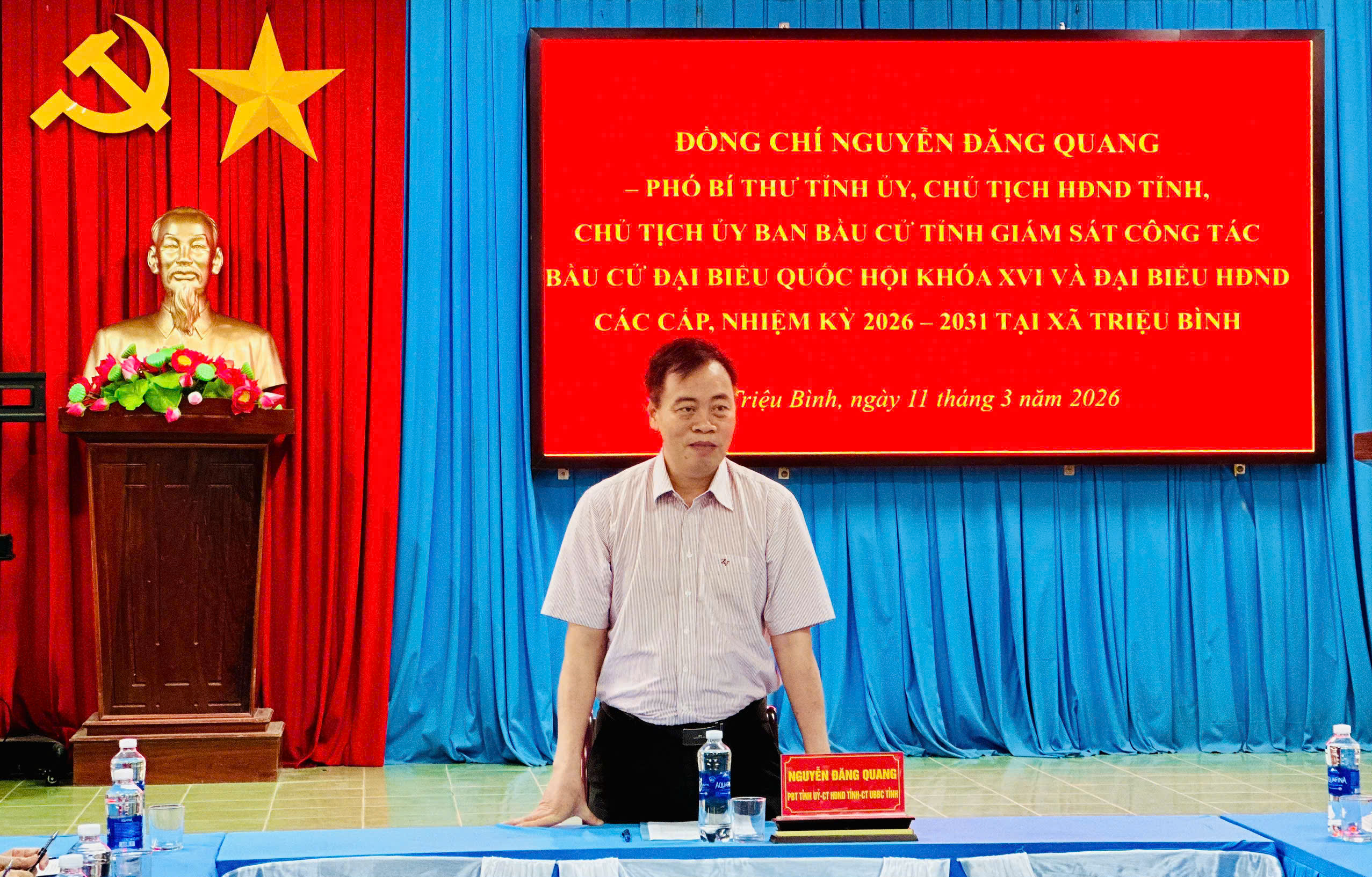 Chiều 11/3/2026, Đoàn giám sát của Thường trực HĐND tỉnh do đồng chí Nguyễn Đăng Quang, Phó Bí thư Tỉnh ủy, Chủ tịch HĐND tỉnh, Chủ tịch Ủy ban Bầu cử tỉnh làm Trưởng đoàn đã đến kiểm tra, khảo sát công tác chuẩn bị bầu cử đại biểu Quốc hội khóa XVI và đại biểu HĐND các cấp nhiệm kỳ 2026 – 2031 tại xã Triệu Bình.
