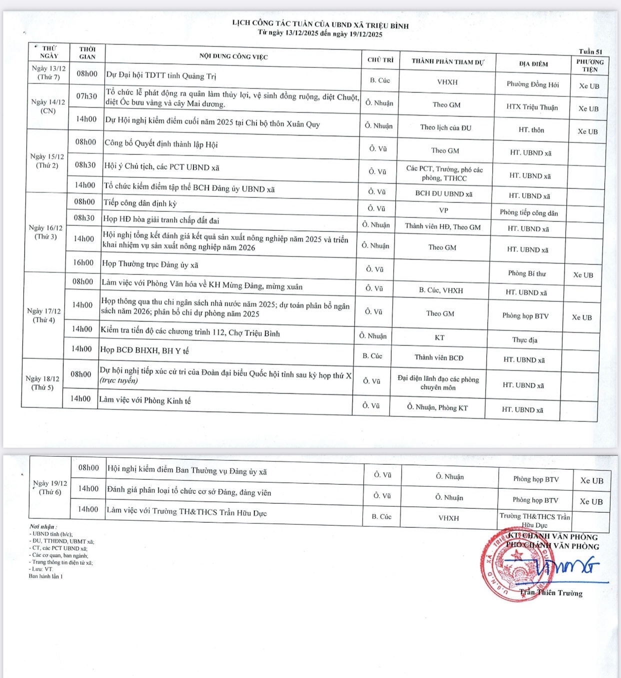 - Lịch công tác của BTV Đảng ủy xã tuần 51 (12/12/2025)