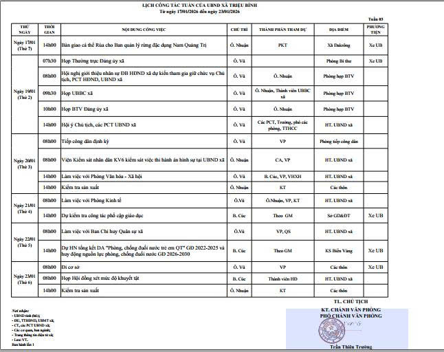 Lịch công tác của UBND xã tuần 3
