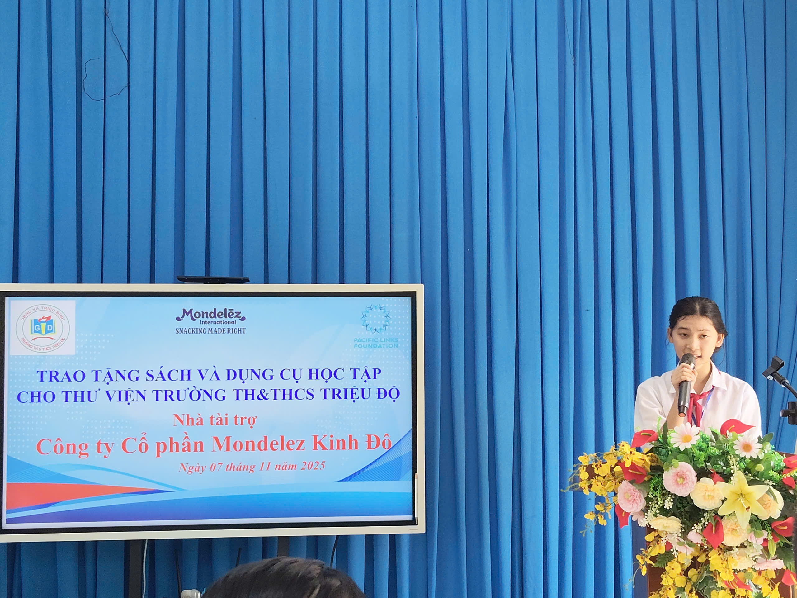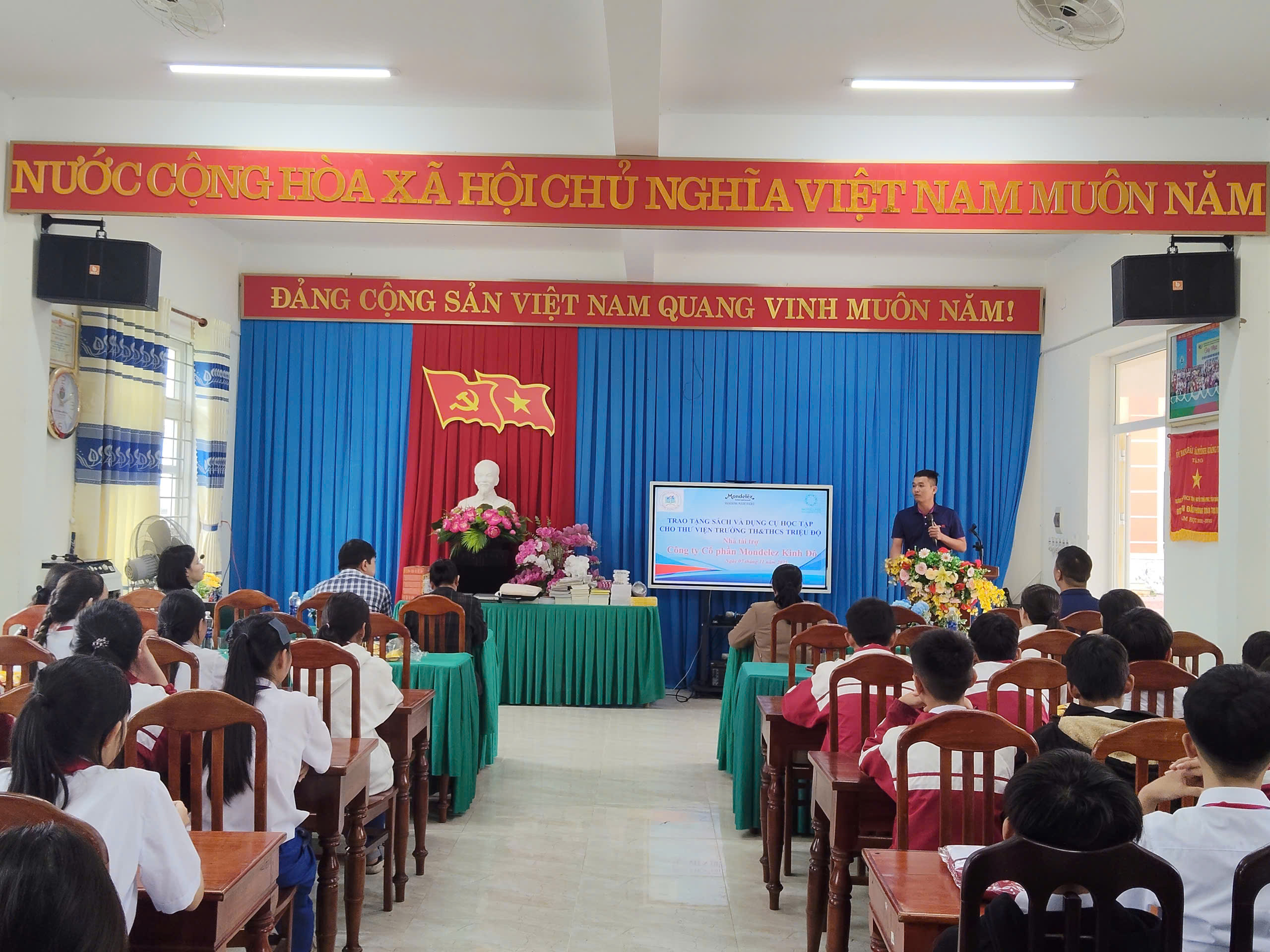 Ngày 07/11/2025, tại Trường TH&THCS Triệu Độ, Công ty Cổ phần Mondelez Kinh Đô phối hợp với Tổ chức Vòng Tay Thái Bình (Pacific Links Foundation) đã tổ chức chương trình trao tặng sách và dụng cụ học tập cho thư viện và học sinh nhà trường. Đây là hoạt động có ý nghĩa thiết thực nhằm đồng hành cùng sự nghiệp giáo dục địa phương, tạo điều kiện để học sinh được tiếp cận nguồn sách hay, bổ ích phục vụ học tập và rèn luyện.