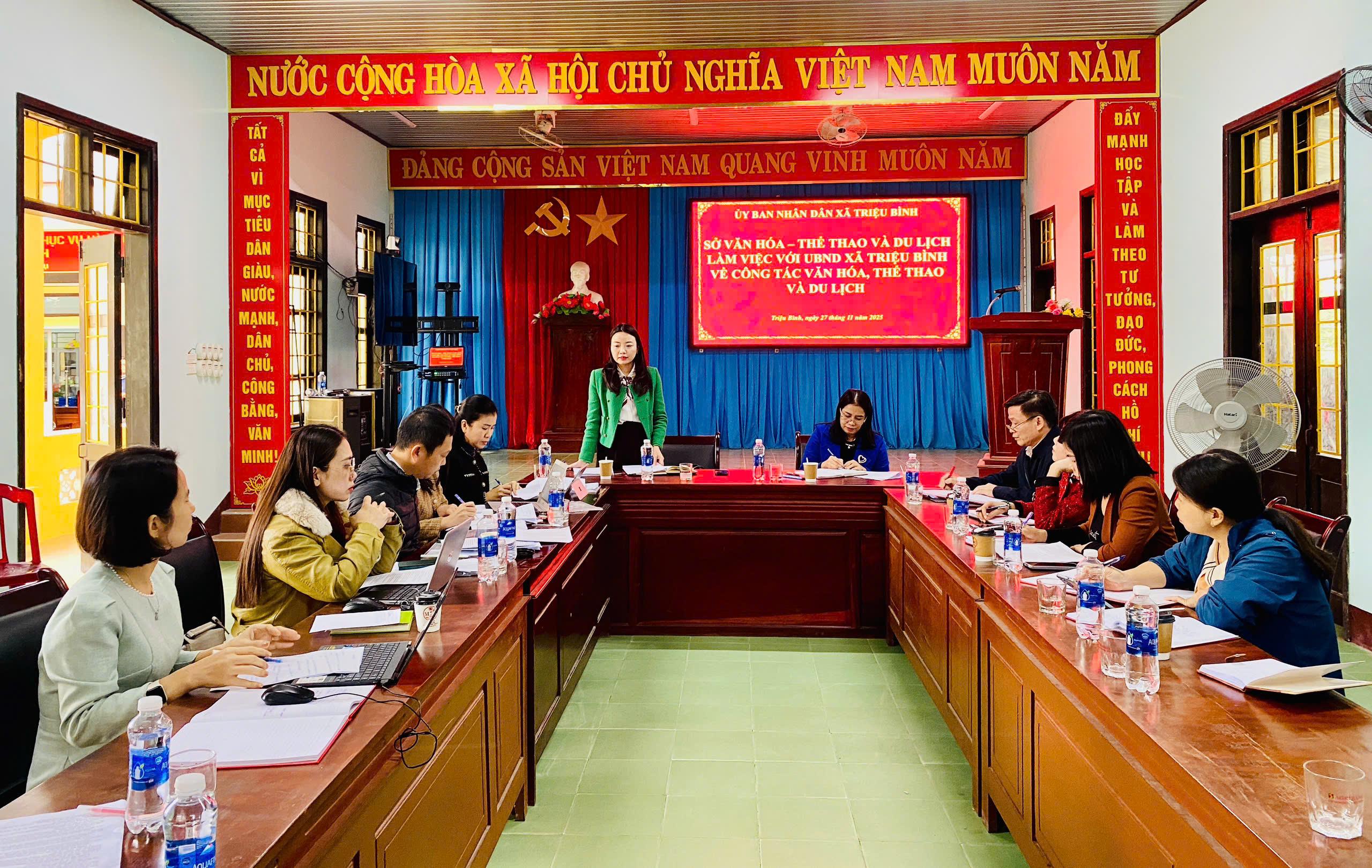 Sở Văn hóa, Thể thao và Du lịch làm việc với UBND xã Triệu Bình về kết quả thực hiện nhiệm vụ năm 2025