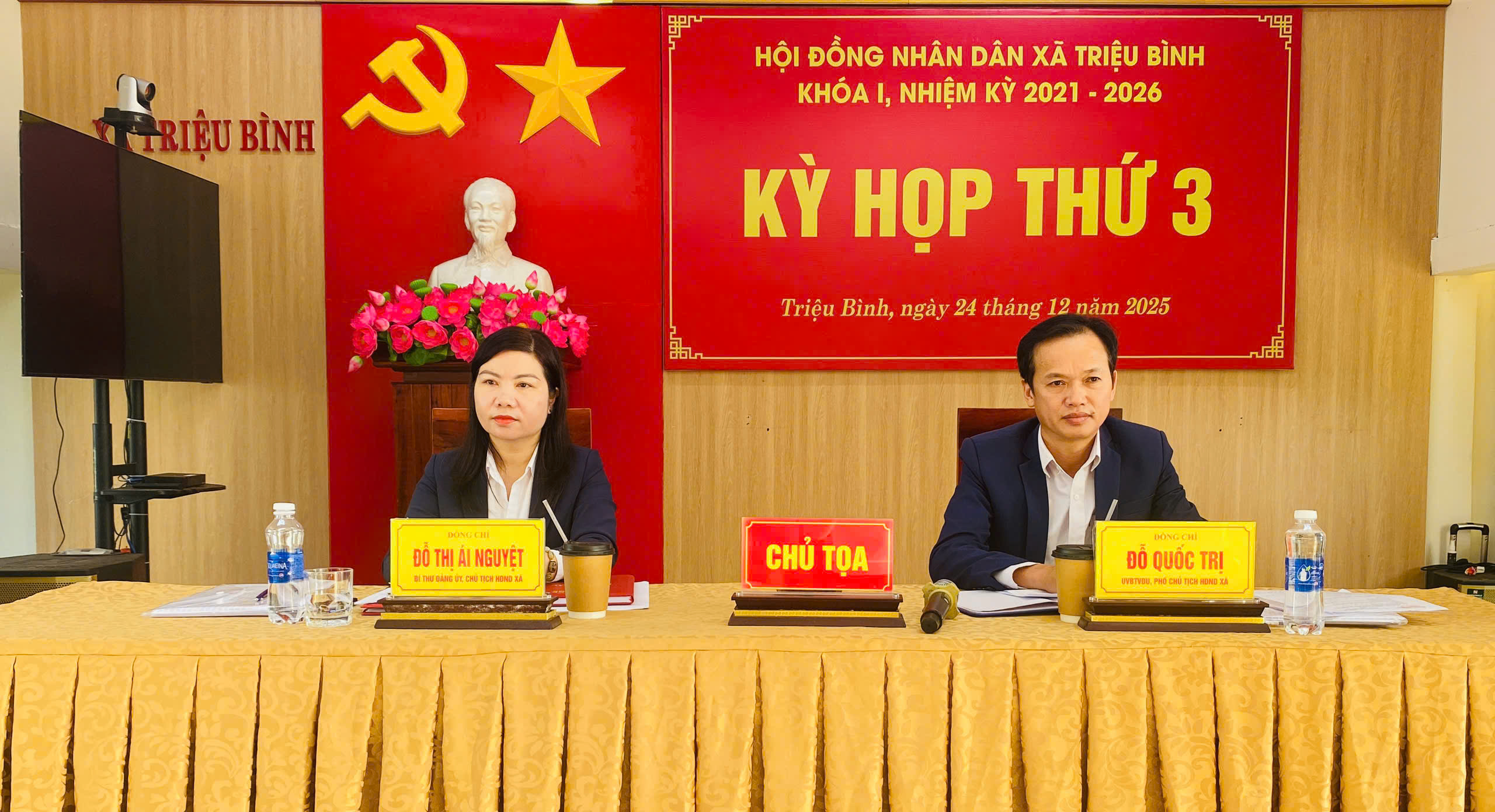 Sáng 24/12/2025, HĐND xã Triệu Bình khóa I, nhiệm kỳ 2021-2026 tổ chức kỳ họp thứ 3 - Kỳ họp thường kỳ cuối năm nhằm đánh giá tình hình thực hiện nhiệm vụ phát triển KT-XH, QP-AN năm 2025, quyết định kế hoạch phát triển KT-XH, QP-AN năm 2026; thông qua những nội dung quan trọng thuộc thẩm quyền.