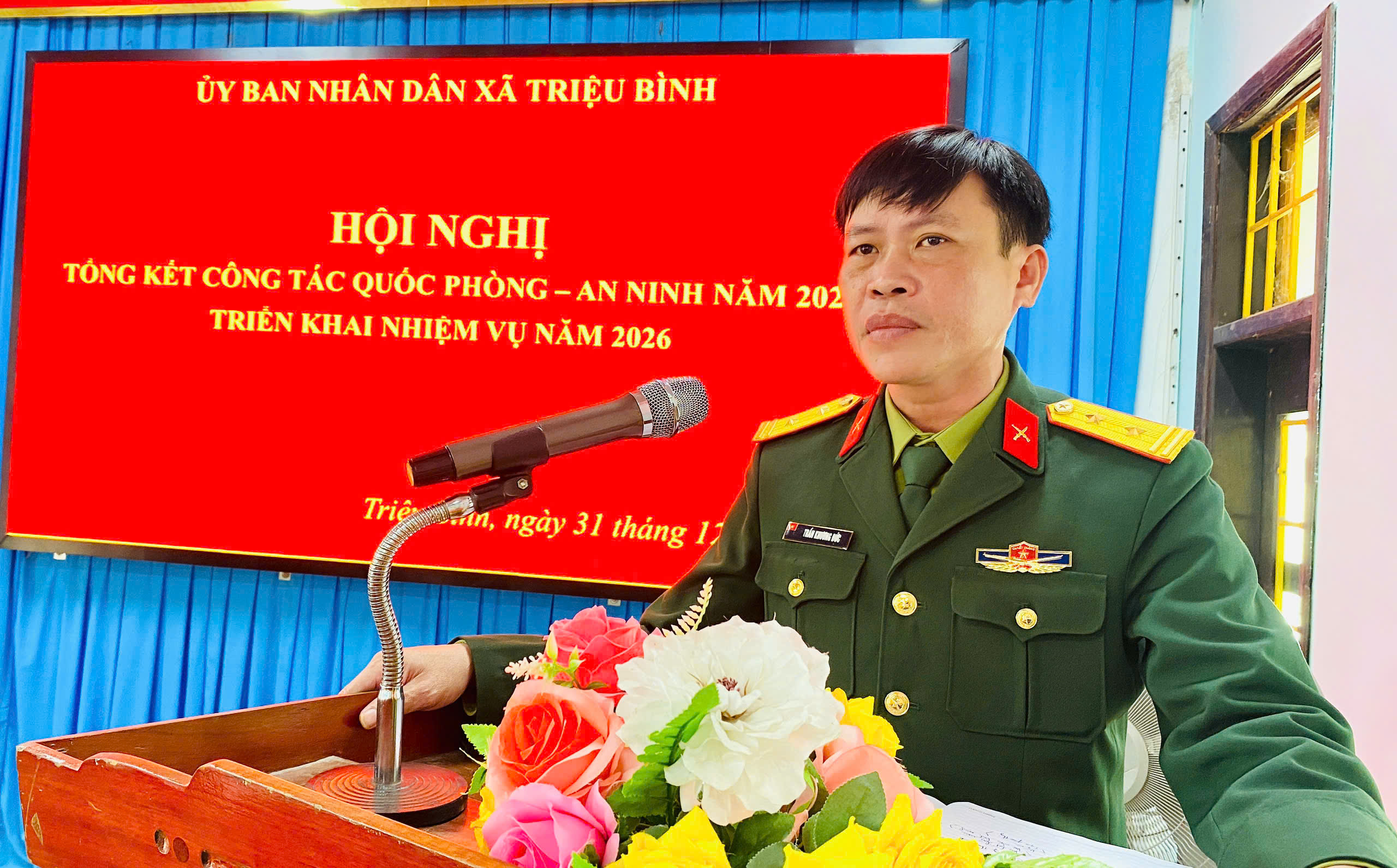 Phát biểu chỉ đạo tại hội nghị, đồng chí Trung tá Trần Khương Đức – Phó CHT Ban chỉ huy PTKV 4 Triệu Phong đã ghi nhận, biểu dương những kết quả nổi bật mà cấp ủy, chính quyền, lực lượng vũ trang và Nhân dân xã đạt được trong công tác quốc phòng – an ninh năm 2025. Đồng thời chỉ đạo, định hướng một số nhiệm vụ trọng tâm trong năm 2026.