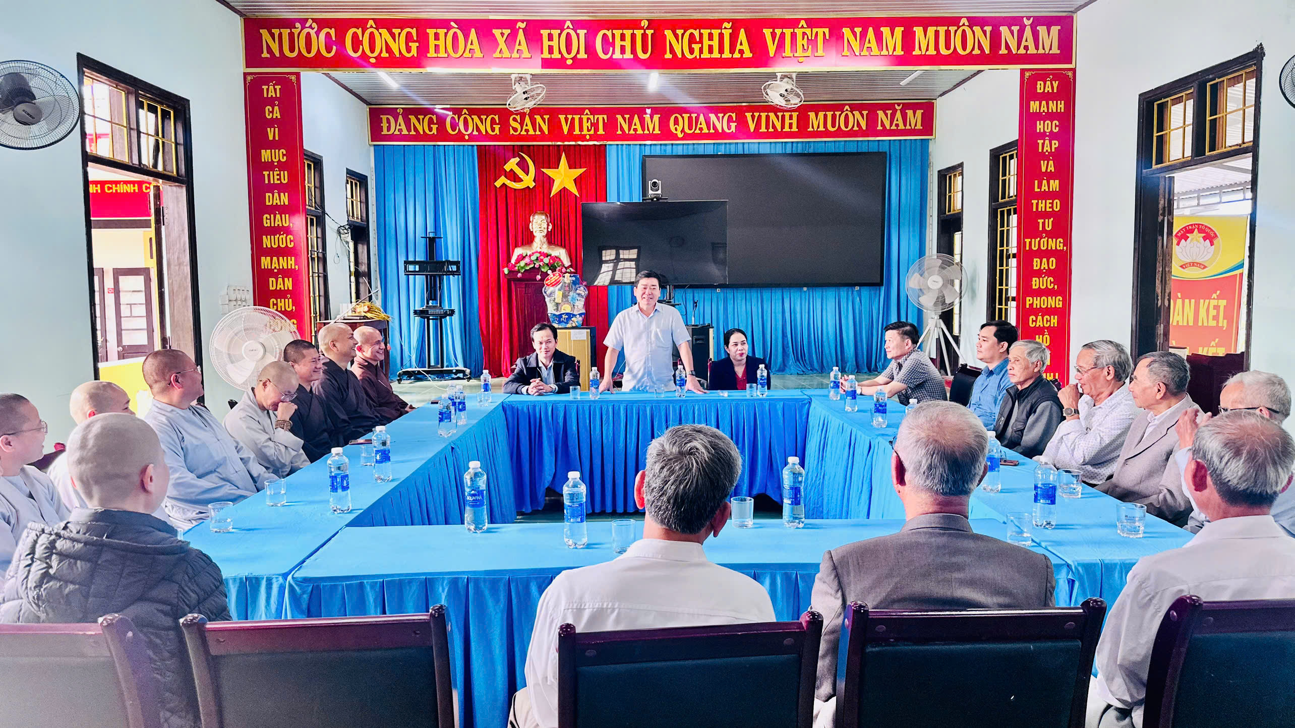 Chư Tăng Ni, Ban hộ tự các chùa trên địa bàn xã đã đến thăm, chúc Tết Đảng ủy, UBND xã nhân dịp Tết Nguyên đán Bính Ngọ 2026